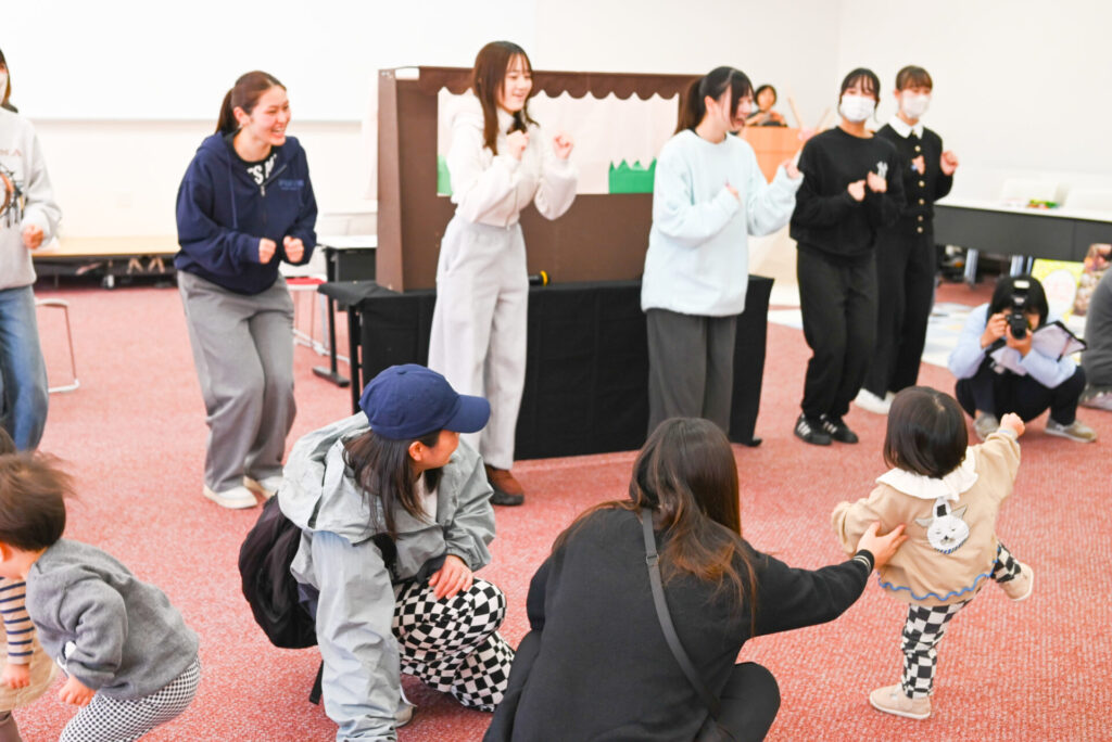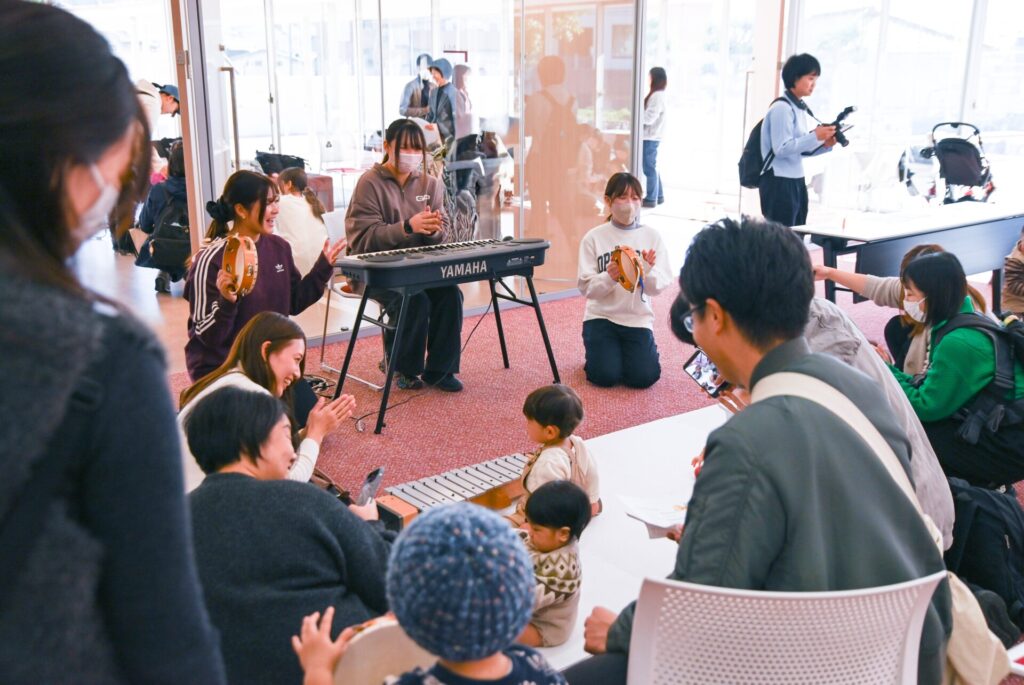 学生が企画・運営する多彩な遊びのブースを巡り、からだを動かしたり、楽器を鳴らしたり、制作をしたりと親子で楽しむ姿が見られ、参加された保護者からは「いろいろな遊びを考えてくれて楽しかった。」「学生さんがたくさん遊んでくれて楽しそうでした!」などの声をお寄せいただきました。